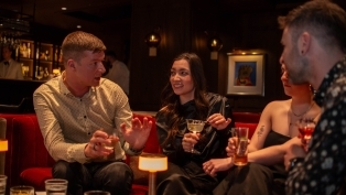 Terwijl we naar de volgende bar wandelen, valt me op hoe levendig de stad nog is op een doordeweekse dag. Veel mensen zitten op terrasjes onder een heater te genieten. Wij besluiten om bij de volgende bar, Hudson, ook lekker op het terras te gaan zitten. Wel met onze jassen aan, maar de heater warmt ons op.