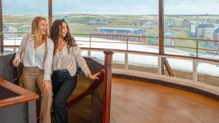 Ik sta op een rond plateau, maar het is net alsof je in een tijdmachine stapt en zo naar 1881 bent geslingerd. Je ziet de woeste zee met vissersbootjes en achter je ligt het – dan nog – kleine vissersdorp Scheveningen. Mijn opa is daar opgegroeid, dus ik vind het heel leuk om te zien hoe Scheveningen er vroeger uitzag. Ik ben ook echt fan van het strand, dus hier ben ik nu regelmatig te vinden.