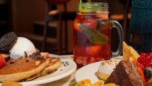 ‘Via een trapje gaan we naar boven bij Juffrouw van Zanten. Ik kies een tafeltje bij het raam, dan kunnen we ook nog naar buiten kijken! Er is ook een terras, maar daar is het vandaag te fris voor. Mijn zus en ik houden van lekker eten. We krijgen een hele toren met cupcakes en pannenkoeken. En ik zie ook nog brownies en kaasstengels, mmm. Echt veel zoet! De slagroom vind ik het lekkerst, maar mijn zus eet de snoepjes van de cupcake af. Ik begin met een pannenkoek en ik strooi er lekker veel roze hagelslag overheen. We mogen ook onbeperkt limonade drinken. Gelukkig, want je krijgt wel dorst van al dat lekkers. Er staan hier ook nog allemaal spelletjes in de kast! Leuk voor de volgende keer. Ik wil zeker nog eens zulke lekkere taartjes eten.’
